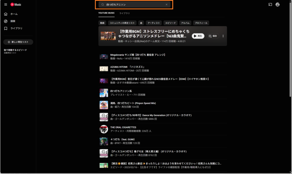 普段は「おすすめのミックス」「ニューリリースミックス」のプレイリストをひたすら漁る。そのほか気分によって聞きたいジャンルがあったらそのジャンルのプレイリストを聴いたり、特定のテーマ(”4つ打ちアニソン”とか)でプレイリストを検索したりする。