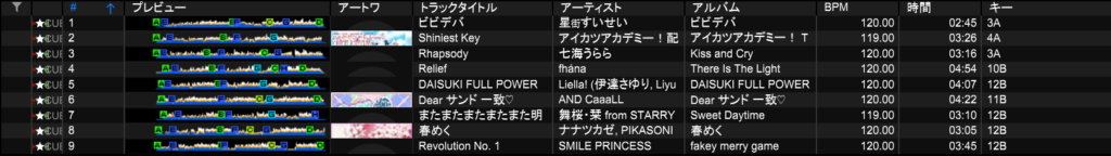 BPM120あたりの曲を使用してクール系な曲から徐々にポップなアイドル系の曲にしていった形です。