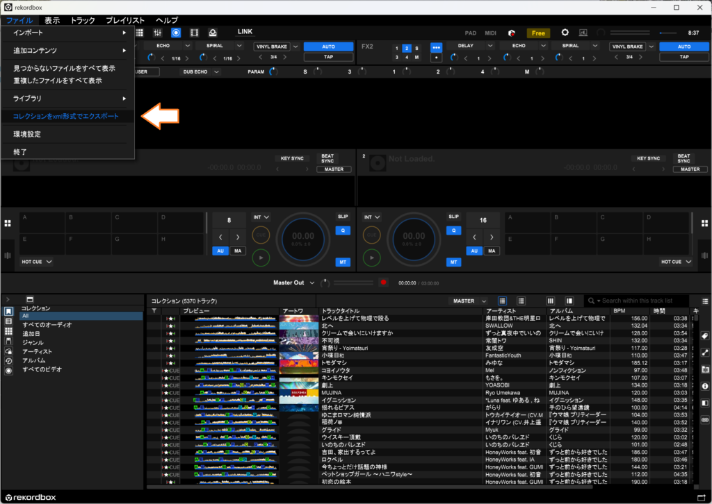 1. rekordbox情報をエクスポートする