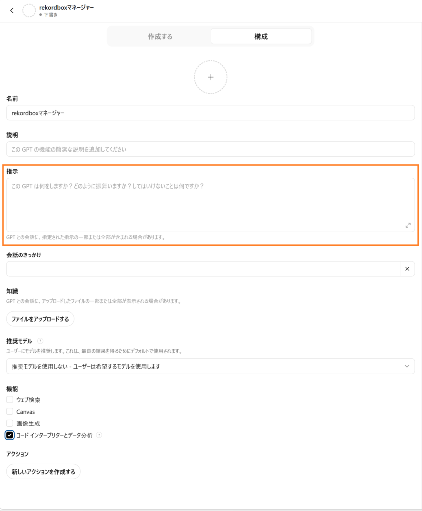 ChatGPTでエクスポートしたrekordbox情報を管理するマイGPTを作っていきます。