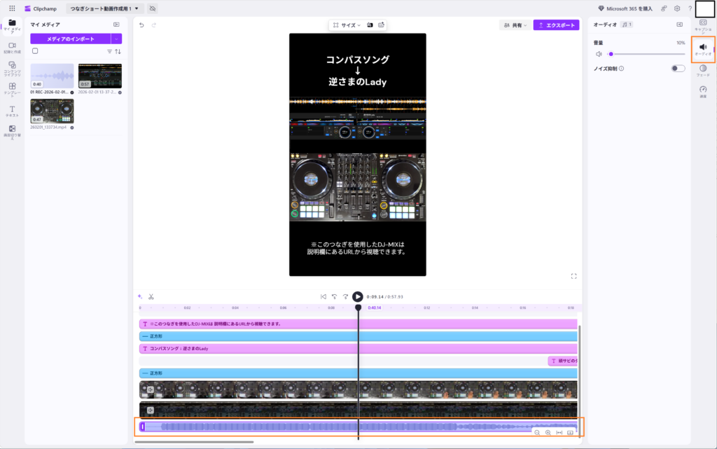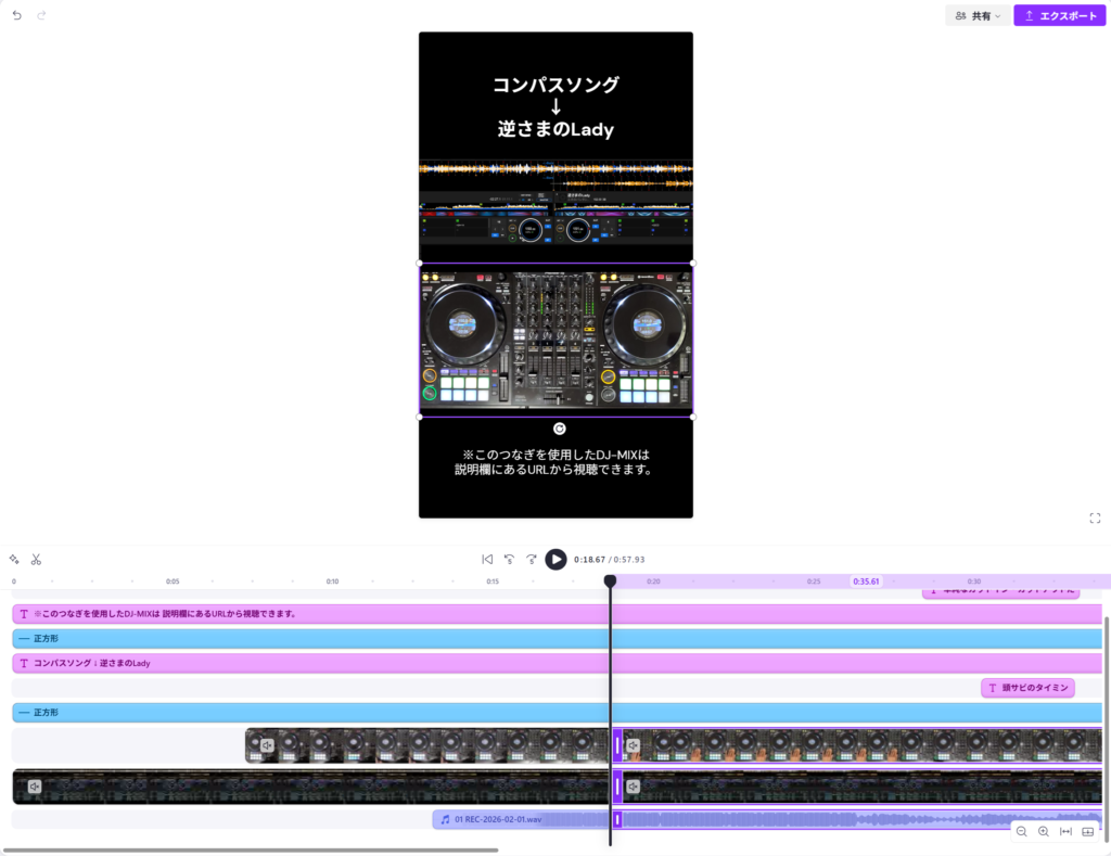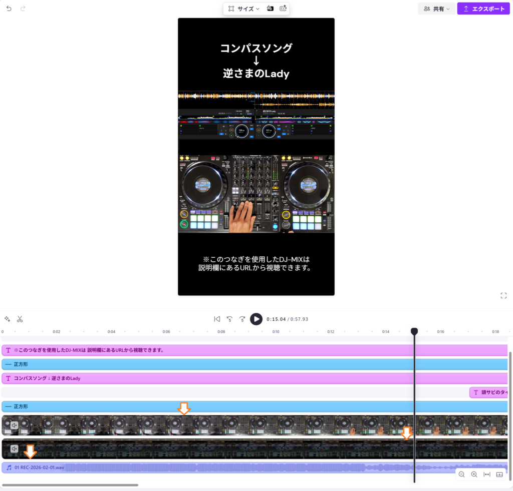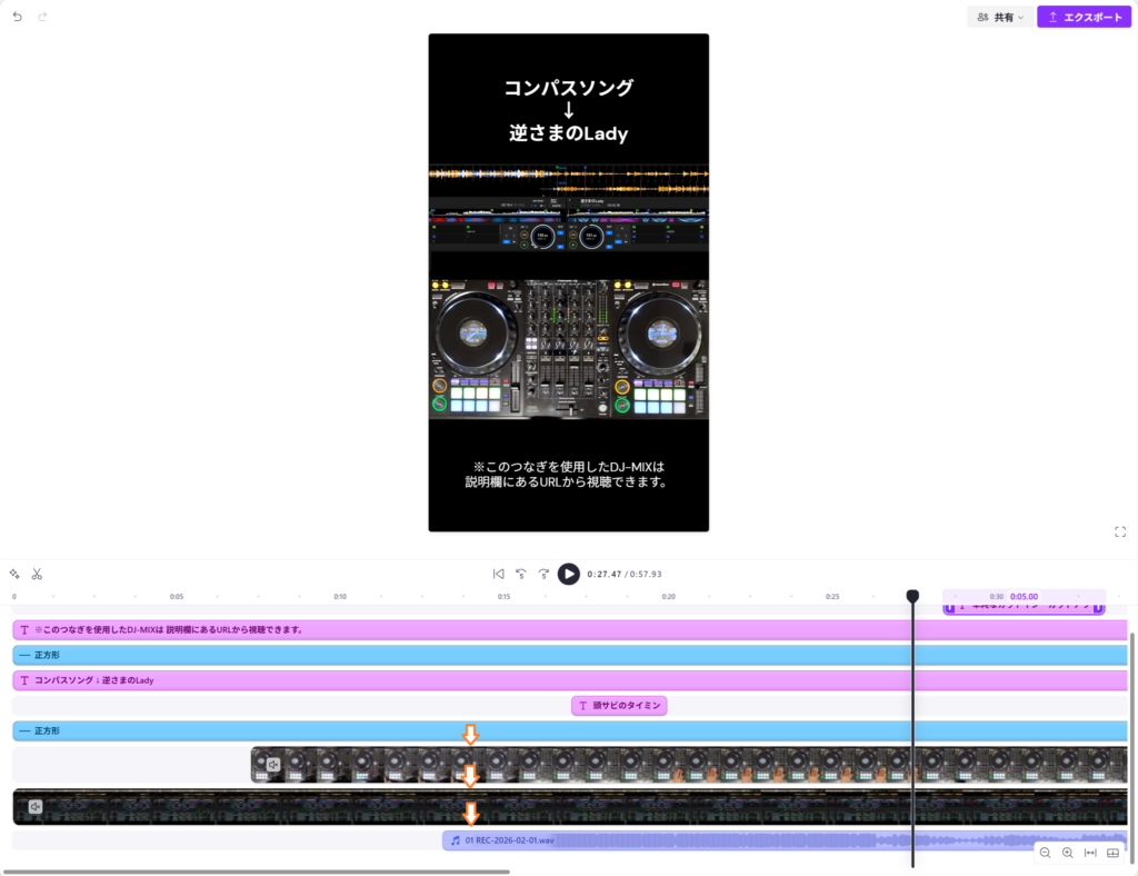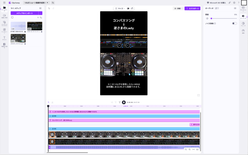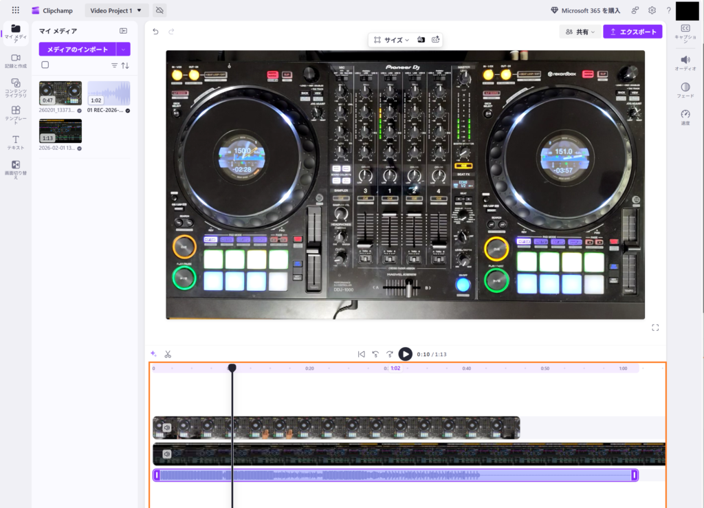 「手元の動画」「DJプレイの音声」「rekordbox画面の動画」をClipchampで編集。 - 投稿