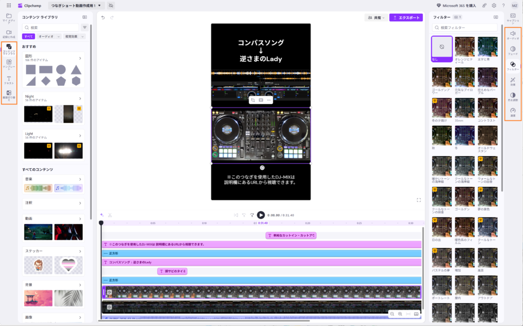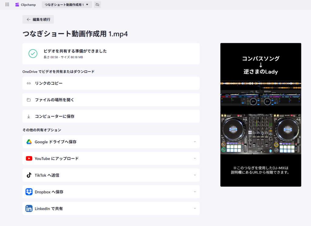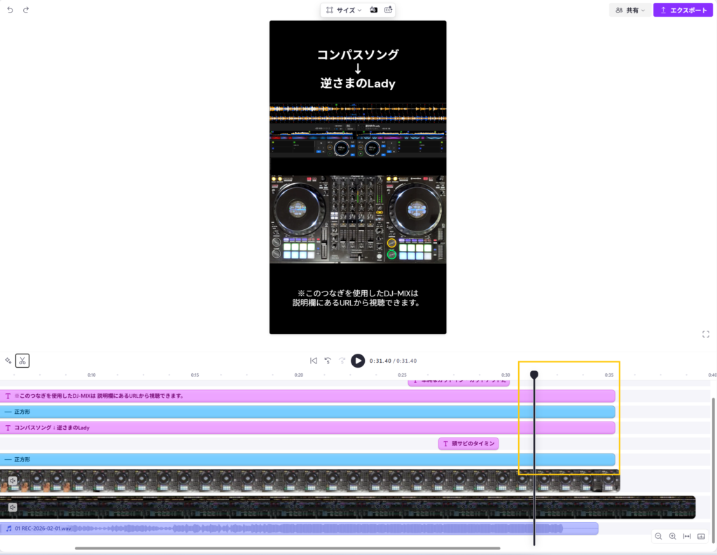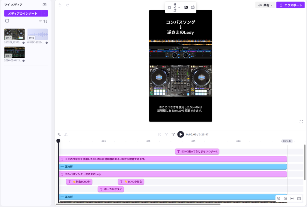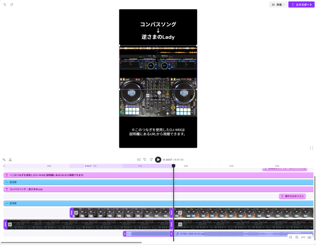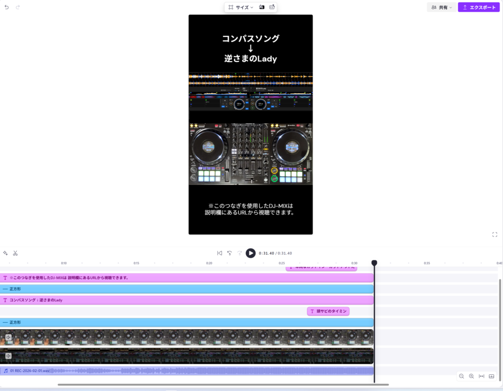 「手元の動画」「DJプレイの音声」「rekordbox画面の動画」をClipchampで編集。 - 投稿