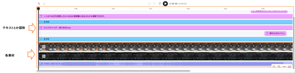 基本的に上記はそれぞれひとつずつ作成するわけではなく、一回のDJプレイで三つ同時に作成していく流れになります。まずはそれぞれの素材の作り方について個別に説明していきます。