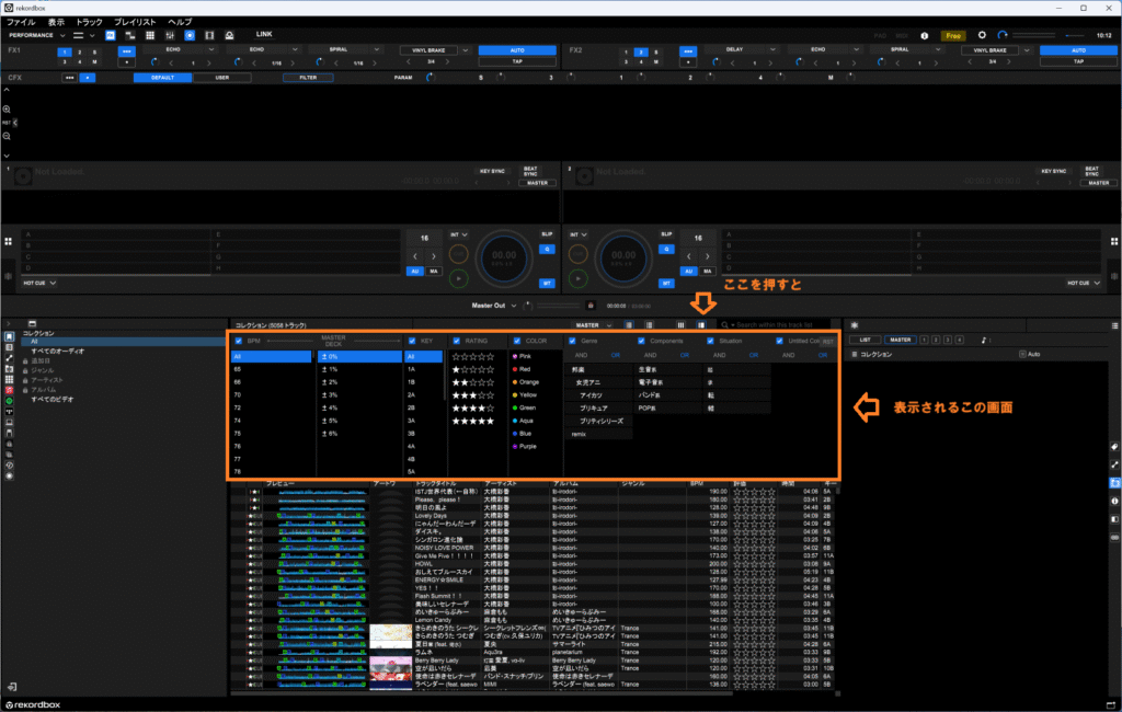 具体的には、トラックフィルター機能を利用した選曲時にが効力を発揮します。
