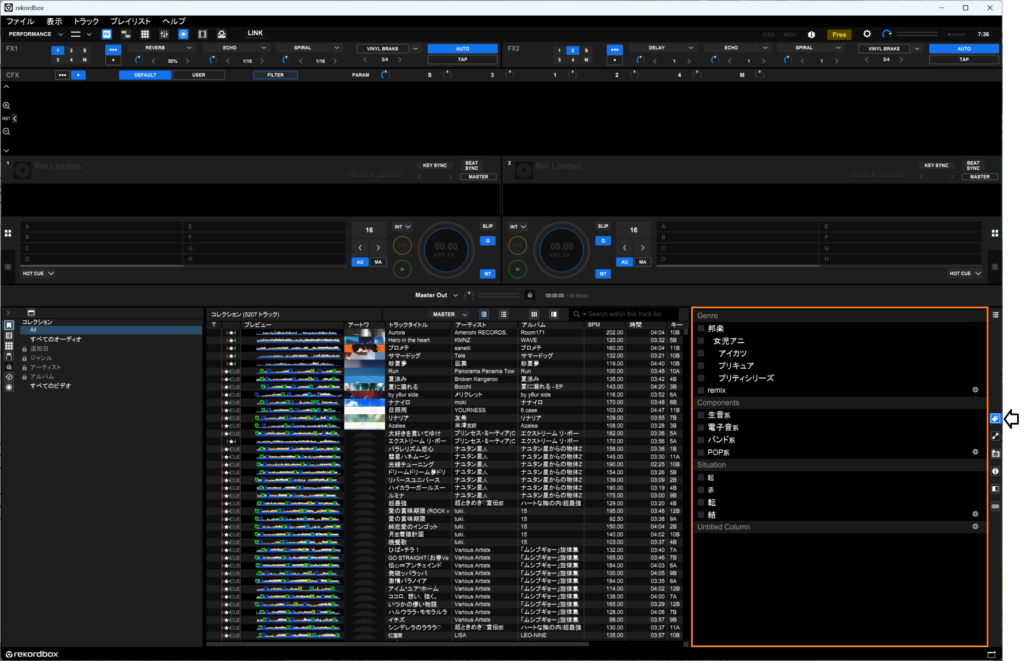 J-POP/アニソンだとジャンル、BPM帯、構成が千差万別になるうえ、楽曲が使われている作品・シリーズ、アーティスト・声優・キャラなど、曲のバックグラウンド的な文脈でDJプレイする機会も多いと思います。そのため、目的に沿った曲をすぐ見つけられるよう、効率的な楽曲管理が必要になってきます。